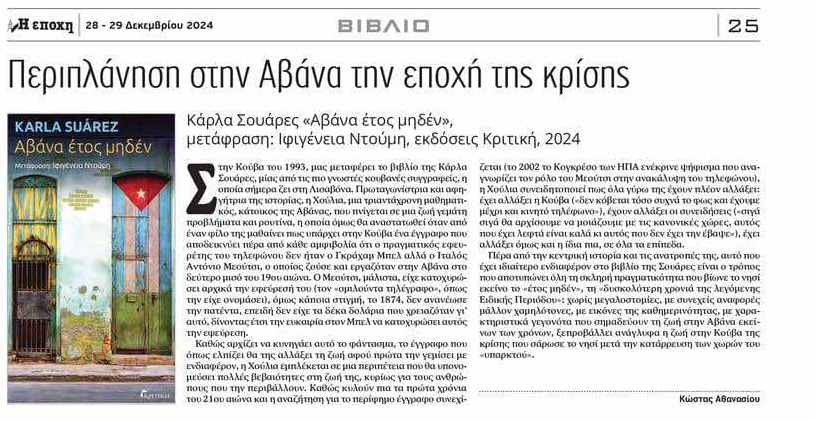 Περιπλάνηση στην Αβάνα την εποχή της κρίσης, Κώστας Αθανασίου, Η Εποχή, 28/12/2024